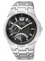Спортивный хронограф Citizen BR0051-59G с тахометром, секундомером и календарем. Точный кварцевый механизм с уникальной системой Eco-Drive не требующей замены батарейки. Aккумулятор подзаряжается от фотоэлемента, принимающего солнечный свет. Средний срок службы аккумулятора 8-10 лет,после чего требуется замена аккумулятора. При полной зарядке аккумулятора часы могут пролежать в полной темноте до 5 месяцев, сохраняя запас энергии. Предусмотрен индикатор заряда батареи.